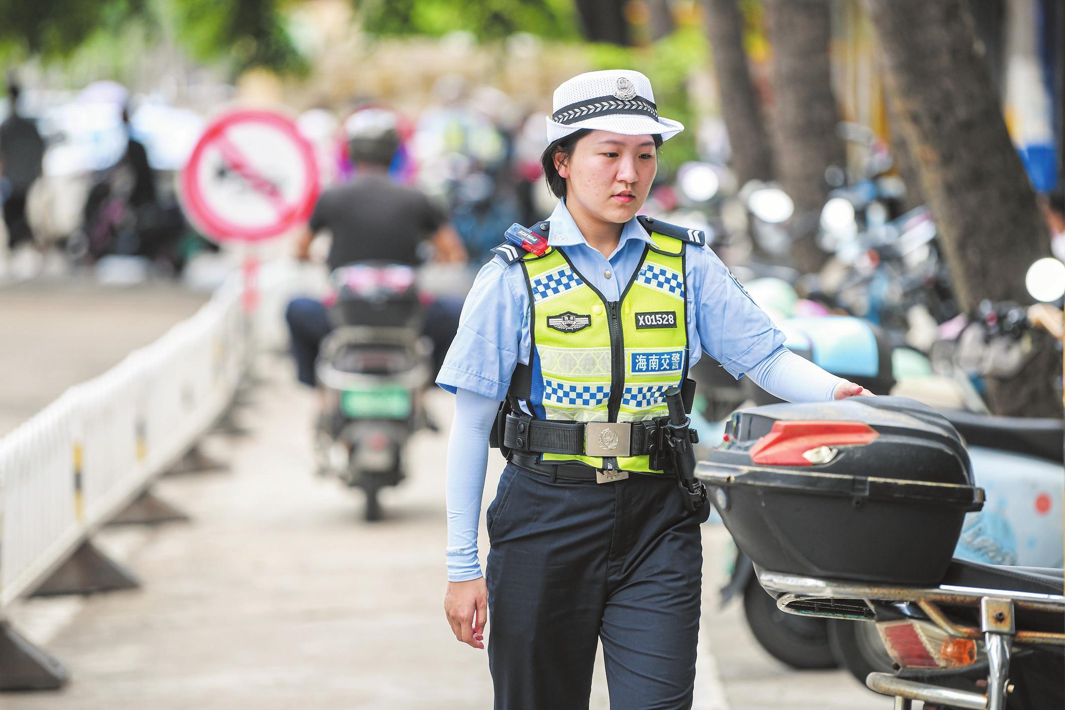 6月8日,在海南中學(xué)高中部考點(diǎn),交警正在檢查考點(diǎn)附近的電動(dòng)自行車警報(bào),為英語考試營(yíng)造安靜的環(huán)境。記者 蘇弼坤 攝