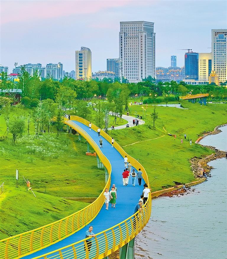 6月14日,江西省南昌市紅谷灘區(qū)贛江市民公園,漫游長廊、休閑步道、兒童樂園等功能型、游樂類設施成為市民健身鍛煉的好去處。近年來,當?shù)胤e極建設城市綠色通道和生態(tài)景觀長廊,并通過水系治理、岸線整治、濕地修復、增添設施等措施,打造風景秀麗、功能多樣的主題公園,讓群眾樂享“15分鐘健身圈”。朱海鵬攝(中經視覺)