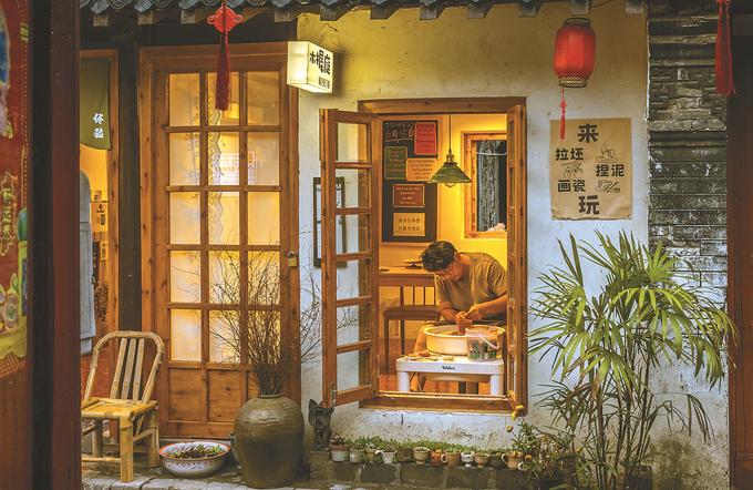 6月8日,南通寺街,90后鄒一鳴在自己的陶藝自習堂內創(chuàng)作。創(chuàng)業(yè)一年多,小店名氣漸漲,還成了民盟南通市委的“科教文化交流基地”。龔衛(wèi)東 攝(視覺江蘇網供圖)