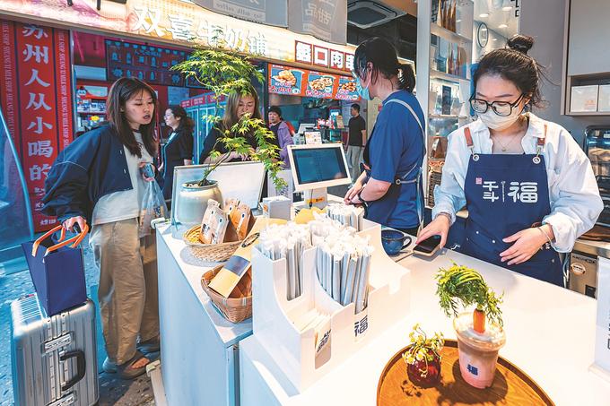 6月8日,蘇州姑蘇區(qū)十全街,95后陳澄開的嘿啰面包店,門庭若市??恐姘焚|和十全街人流量,小店開業(yè)兩年,生意持續(xù)紅火。闕明芬 攝 (視覺江蘇網供圖)