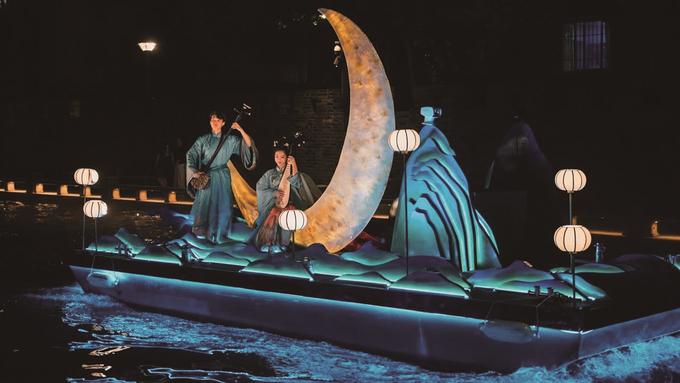 來自上海的田女士兩年內(nèi)來無錫旅游了3次,這次趁著暑假全家出動,專程來體驗“今夜‘梁’宵”江南古運河行浸式光影夜游項目。這是梁溪今年5月全新推出的智慧文旅夜游產(chǎn)品,項目以運河為媒,融合真人演繹、水上演藝船、全息水幕投影、水火特效及AR科技等多元表現(xiàn)手法,通過90分鐘游覽時間展現(xiàn)了八大無錫經(jīng)典盛景,生動再現(xiàn)大運河的千年文化底蘊與傳奇故事?!袄仙俳砸?,我們?nèi)叶己芟矚g這個夜游項目,穿越古今的沉浸式體驗既讓我們感受到科技的魅力,也欣賞到運河兩岸的風(fēng)景,無錫夜景很美,確實值得一游再游?!碧锱空f,很期待梁溪再推出新的特色文旅項目。