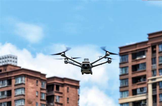 7月23日,北碚區(qū)城區(qū),一架智能無人機(jī)在空中巡邏助力智慧城市管理。特約攝影 秦廷富/視覺重慶
