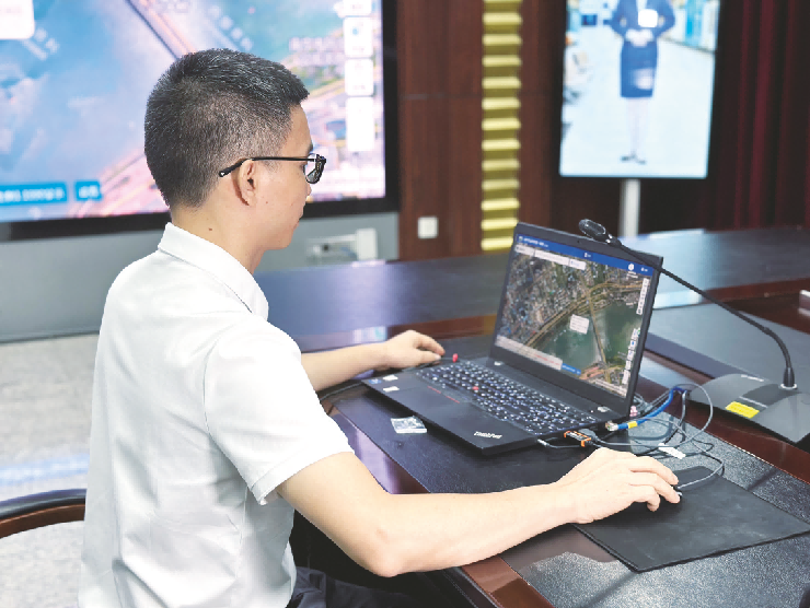 南寧市自然資源信息集團(tuán)有限公司技術(shù)人員演示“清淤一張圖”,清淤情況實(shí)時(shí)可視化。記者 韋靜 攝