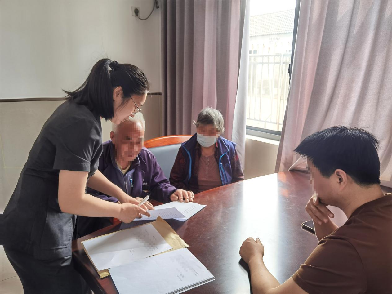 圖為慈溪市法院橫河法庭法官助理在調(diào)解一起涉老年人的交通事故案件