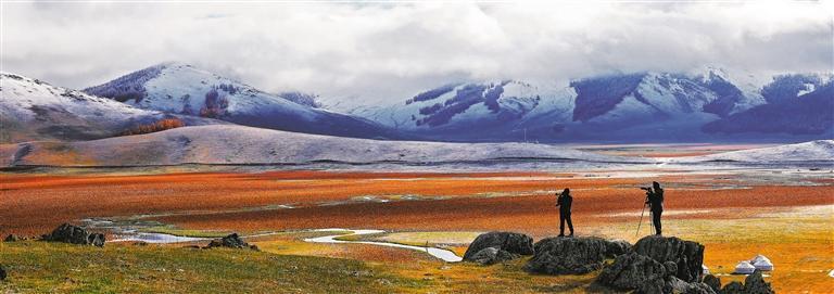 10月2日,新疆阿勒泰市托勒海特草原,雪山、河流、云海相映成景。 阿爾達(dá)克·拜斯汗攝(中經(jīng)視覺)