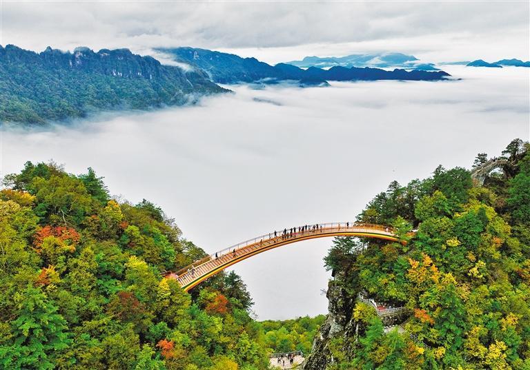 10月3日,位于湖北省西北部的神農(nóng)架天燕景區(qū)云海翻涌。云海是神農(nóng)架景區(qū)秋季最具代表性的自然景觀。 李 瀟攝(中經(jīng)視覺)