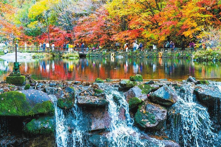 10月11日,游客在遼寧省本溪市大石湖景區(qū)觀賞紅楓。 何華文攝(中經(jīng)視覺)