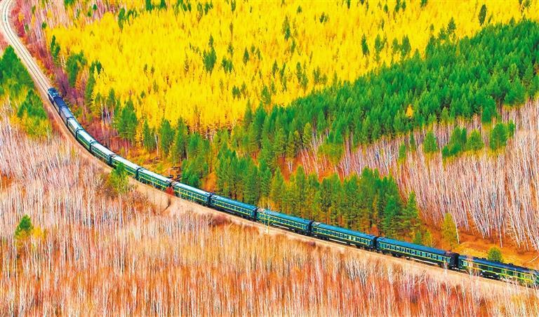 10月2日,黑龍江省大興安嶺漠河市九曲十八彎,金秋山林色彩斑斕。 孫立君攝(中經(jīng)視覺)