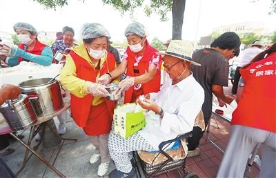 做完飯,志愿者全身都是汗水。
