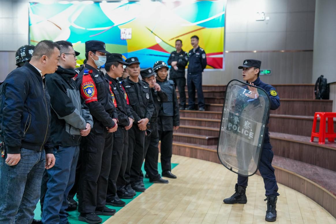 巡特警大隊的專業(yè)教官團隊從實戰(zhàn)出發(fā),圍繞安全意識強化、常用裝備規(guī)范操作、突發(fā)事件先期處置要點等核心內(nèi)容,對鼓樓轄區(qū)內(nèi)22家物業(yè)單位的70余名安保力量進行了系統(tǒng)講解與手把手的實操教學(xué),為后續(xù)演練奠定了扎實的技能基礎(chǔ)。