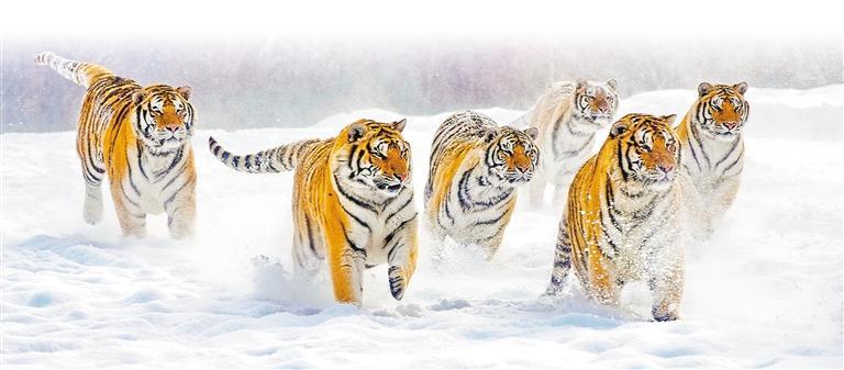 2021年12月23日,牡丹江市海林市橫道河子?xùn)|北虎林園,老虎們?cè)谘┑厣湘音[。橫道河子?xùn)|北虎林園是世界最大的東北虎人工繁育基地,在東北虎種群保護(hù)、野化訓(xùn)練等方面發(fā)揮了重要作用。趙日偉攝(中經(jīng)視覺(jué))