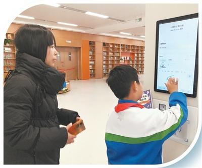 雄安圖書館內(nèi),小學(xué)生通過智能書柜檢索圖書。人民網(wǎng)記者 孫博洋攝