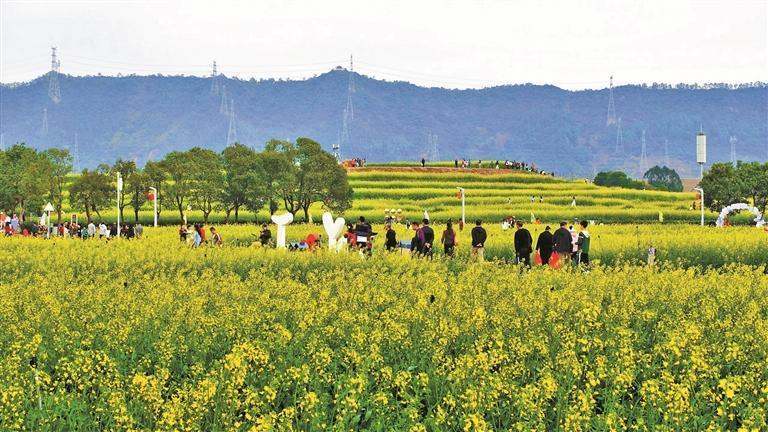 大梅沙的海浪輕撫金色沙灘,把歡笑卷進(jìn)浪花;梧桐山深處,吊鐘花已開滿山坡,人們拾級而上,穿行于青山綠水間;深圳灣的棧道上,人流與候鳥同向而行;虹橋公園里,4公里“紅飄帶”蜿蜒,行人漫步虹橋之上,祈愿新年“行鴻運(yùn)”;光明田園里,油菜花鋪成金色的海,支一頂帳篷,煮一壺清茶,歡聲笑語回蕩。