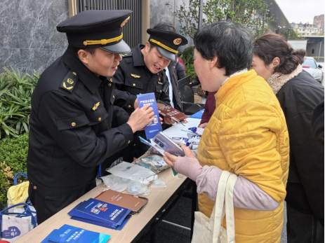 執(zhí)法人員向過往群眾開展普法宣傳