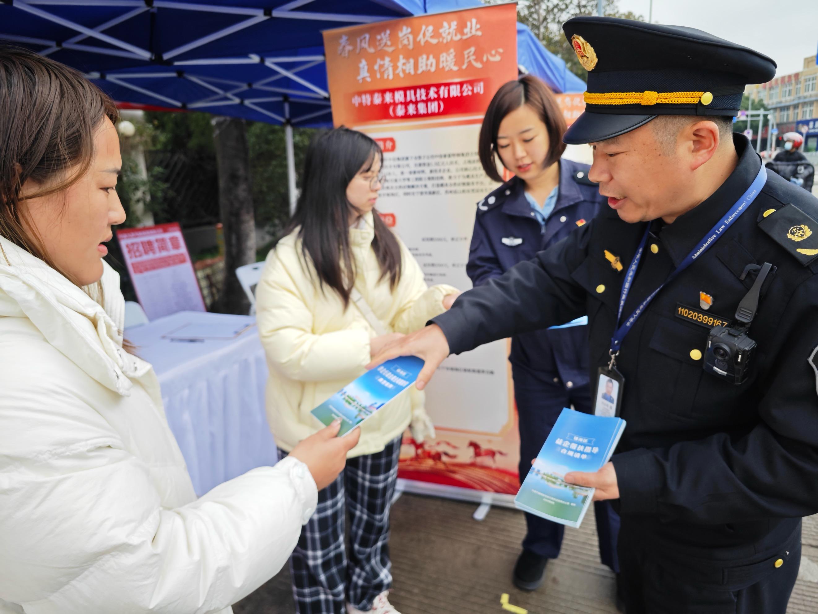 精細管控,護航“家門口”就業(yè)。針對工業(yè)、盛家等社區(qū)企業(yè)密集,長期用工需求量大的問題,駱駝街道綜合行政執(zhí)法隊聯合工業(yè)、盛家等社區(qū),統(tǒng)籌場地、交通等因素,科學設置臨時招聘點位及固定招聘廣告張貼點。在人流量最多的盛興路與東開路交叉口西段設置一段臨時區(qū)域,引導企業(yè)在設置區(qū)域內設攤招工。針對招聘企業(yè)多,人流量大等特點,執(zhí)法隊采取“定點值守+機動巡查”模式,以精細化管控維護招聘點位及周邊環(huán)境秩序。截至目前,已累計引導本地企業(yè)設攤60余家,在臨時招工廣告區(qū)張貼招聘廣告50余份,規(guī)范非機動車有序停放200余輛,勸離違停機動車10余輛。