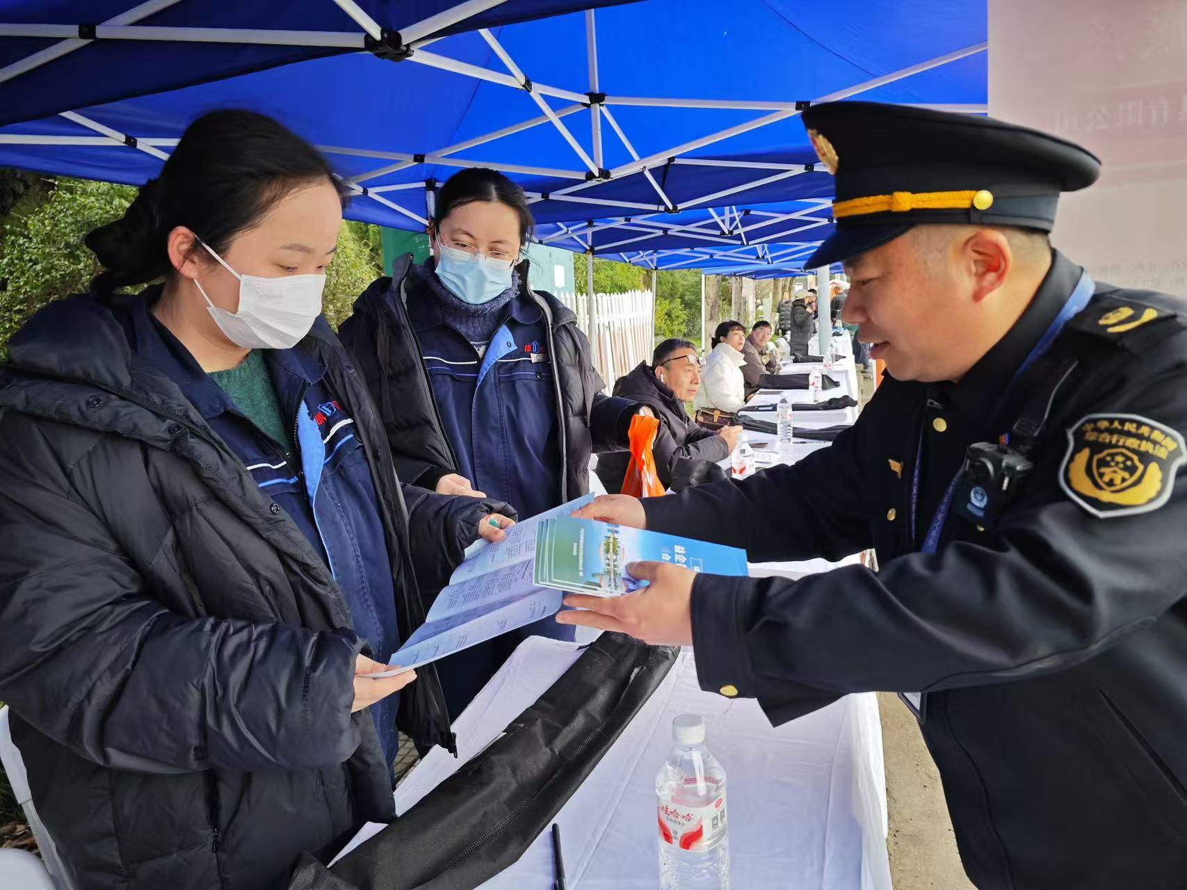執(zhí)法人員向企業(yè)發(fā)放涉企行政規(guī)范全周期指引手冊
