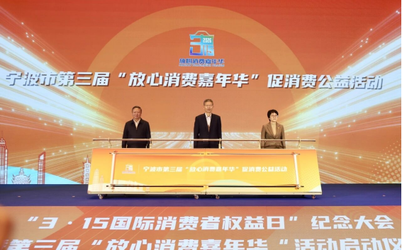 3月12日下午,浙江省寧波市消保委舉行以“提升消費(fèi)品質(zhì)”為主題的“3·15”國際消費(fèi)者權(quán)益日大會(huì)暨放心消費(fèi)嘉年華啟動(dòng)儀式。
