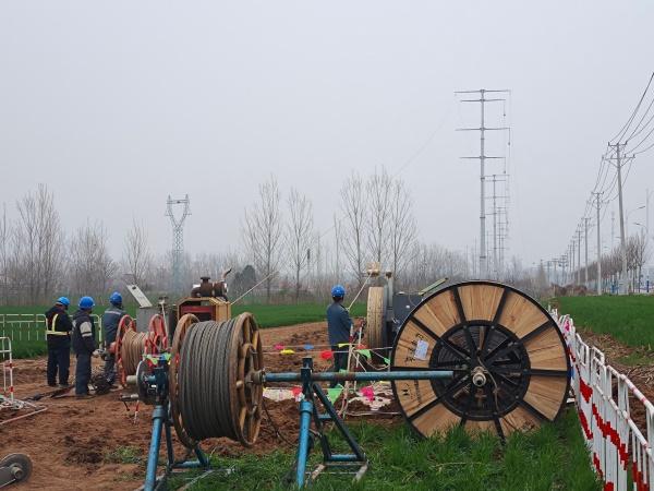 3月23日,在河南省漯河市平漯周高鐵漯河西牽引站220千伏外部供電工程現(xiàn)場,國網(wǎng)漯河供電公司施工人員正在進(jìn)行220千伏Ⅰ尊英線地線更換光纜施工,現(xiàn)場緊線、掛線、附件安裝等工作有序進(jìn)行。與此同時,平漯周高鐵孟寨牽引站220千伏外部供電工程(喬董還建)也正在進(jìn)行N29-N31組塔施工。