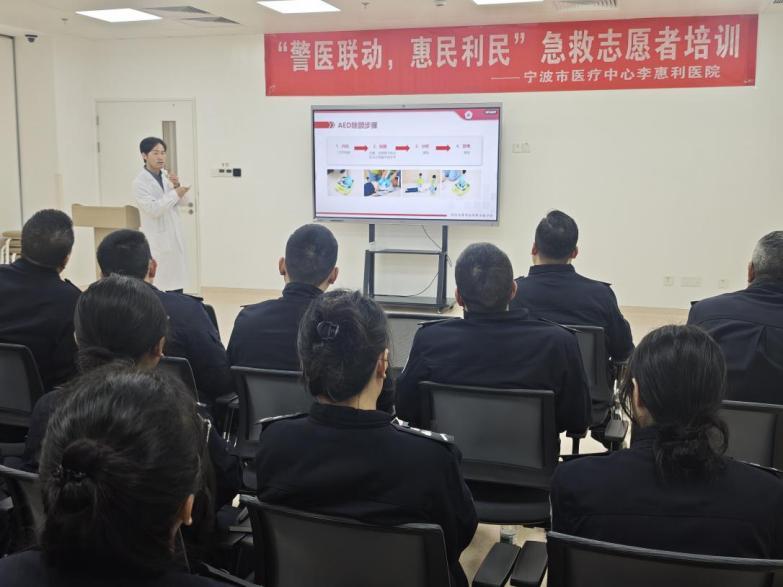 理論環(huán)節(jié)中,李惠利醫(yī)院急救專家團隊用通俗易懂的方式清晰地講解了心肺復(fù)蘇的基本原理、AED的使用方法及海姆利希急救法的操作要點。針對民輔警執(zhí)法過程中常見的創(chuàng)傷、休克等緊急情況,著重強調(diào)了“黃金救援4分鐘”的重要性。