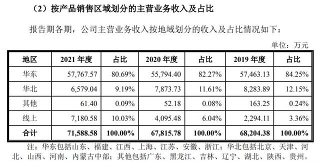 八成以上收入來自華東地區(qū)