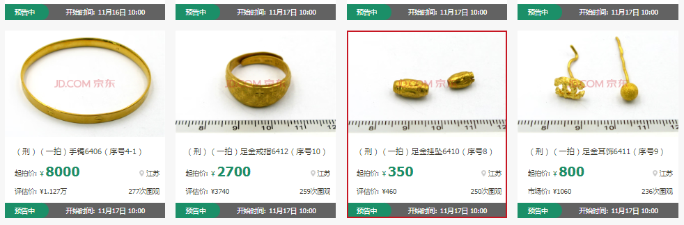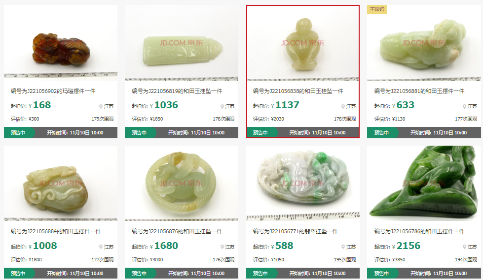 蘇州吳中法院和常熟法院在京東11.11期間上拍的一批金銀玉石,數(shù)量超過100件,包含精品和田玉手把件、手串、手鐲,翡翠掛件、手把件,金條、金項鏈、金手鐲等各類金銀玉石。品種繁多,性價比超高。