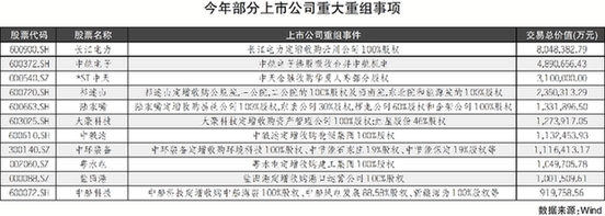 從并購重組參與方來看,今年國企上市公司的并購重組表現(xiàn)尤其活躍,且交易價(jià)值不菲。今年披露的12個(gè)交易總價(jià)值過百億元的重大重組事件中,有11個(gè)事件參與方為國企上市公司。其中,長江電力定增收購云川公司100%股權(quán)事件,交易總價(jià)值達(dá)804.84億元,位居首位。