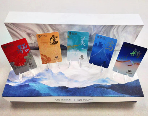 在外觀設計上,“強富美高新”硬錢包簡潔大方、主題突出,每套硬錢包由五張標準卡片式硬錢包組成,分別取名“強、富、美、高、新”,體現(xiàn)了新時代江蘇發(fā)展的總目標定位。其中,“強”主題硬錢包采用中國風設計,體現(xiàn)江蘇經濟高質量發(fā)展,氣勢如虹;“富”主題硬錢包采用南京云錦作為底紋,在花叢中呈現(xiàn)城市樣貌,體現(xiàn)人民群眾獲得感、幸福感、安全感不斷增強;“美”主題硬錢包采用典雅的中國水彩風設計,綠色潑墨漸變體現(xiàn)江蘇綠水青山的生態(tài)環(huán)境建設成果,融入了省會南京的玄武門、銀杏葉、吉祥飛鳥等元素,寓意江南魚米之鄉(xiāng)的秀美風光;“高”主題硬錢包采用深藍色作為設計主色,鋼筆的筆尖與文化和文明相呼應,體現(xiàn)江蘇的社會文化程度高;“新”主題硬錢包采用新中式風格,以江南建筑輪廓融入更多現(xiàn)代的審美,寓意堅持把科技創(chuàng)新作為經濟社會發(fā)展的第一動力。