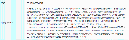 格力電器訴求判令被告將ZL201410800759.8、ZL201420816905.1、ZL201410800823.2、ZL201420816545.5、ZL201420793148.0、ZL201410774412.0、ZL201420793222.9、ZL201420814998.4號專利權(quán)轉(zhuǎn)移至原告名下;并且賠償原告9900萬元。
