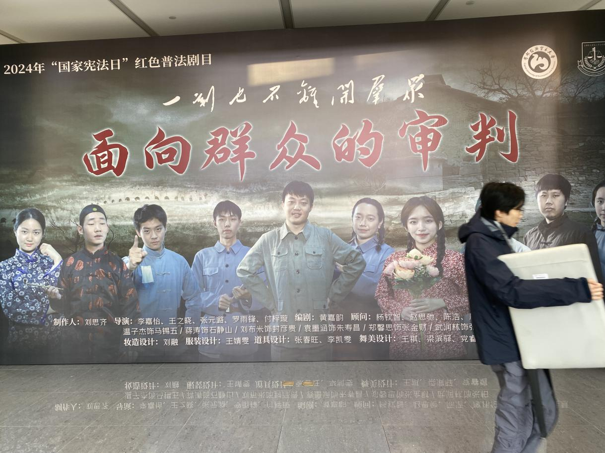 12月4日,我國(guó)迎來第十一個(gè)國(guó)家憲法日,首都經(jīng)濟(jì)貿(mào)易大學(xué)(下稱“首經(jīng)貿(mào)”)紅色普法劇目《面向群眾的審判》在琢玉講堂進(jìn)行了首場(chǎng)公演。