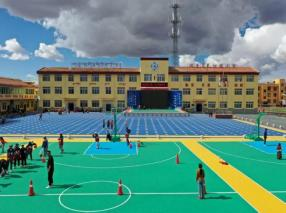 紅原縣小學操場舊貌換新顏。紅原縣瓦切鎮(zhèn)小學建于1959 年,多年使用后操場破損嚴重,極大危害學生活動安全。2024 年, 中國人保投入專項資金將原有損壞嚴重的青石板操場提升改造為懸浮地板,為學生提供健康安全的運動空間。