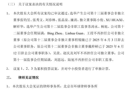 會(huì)議采用現(xiàn)場投票與網(wǎng)絡(luò)投票相結(jié)合的方式進(jìn)行,出席會(huì)議的股東及代理人共1195人,代表有表決權(quán)股份4707457561股,占公司有表決權(quán)股份總數(shù)的81.487%,會(huì)上,《關(guān)于董事會(huì)提前換屆并選舉公司第十三屆董事會(huì)非獨(dú)立董事的議案》、《關(guān)于董事會(huì)提前換屆并選舉公司第十三屆董事會(huì)獨(dú)立董事的議案》等全部議案均獲得通過。