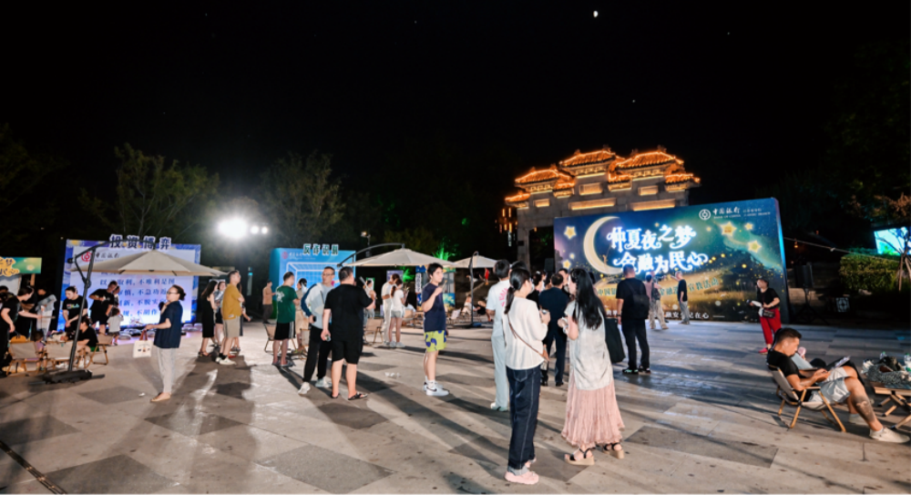 華燈初上,夜色漸濃,市民朋友和外籍人士在“仲夏夜之夢 金融為民心”主背景板上一起貼上發(fā)光小星星。一瞬間,主題發(fā)光驟亮,浪漫充斥全場,靈感如璀璨燈火,點亮創(chuàng)意之境,將現(xiàn)場氣氛徹底點燃。