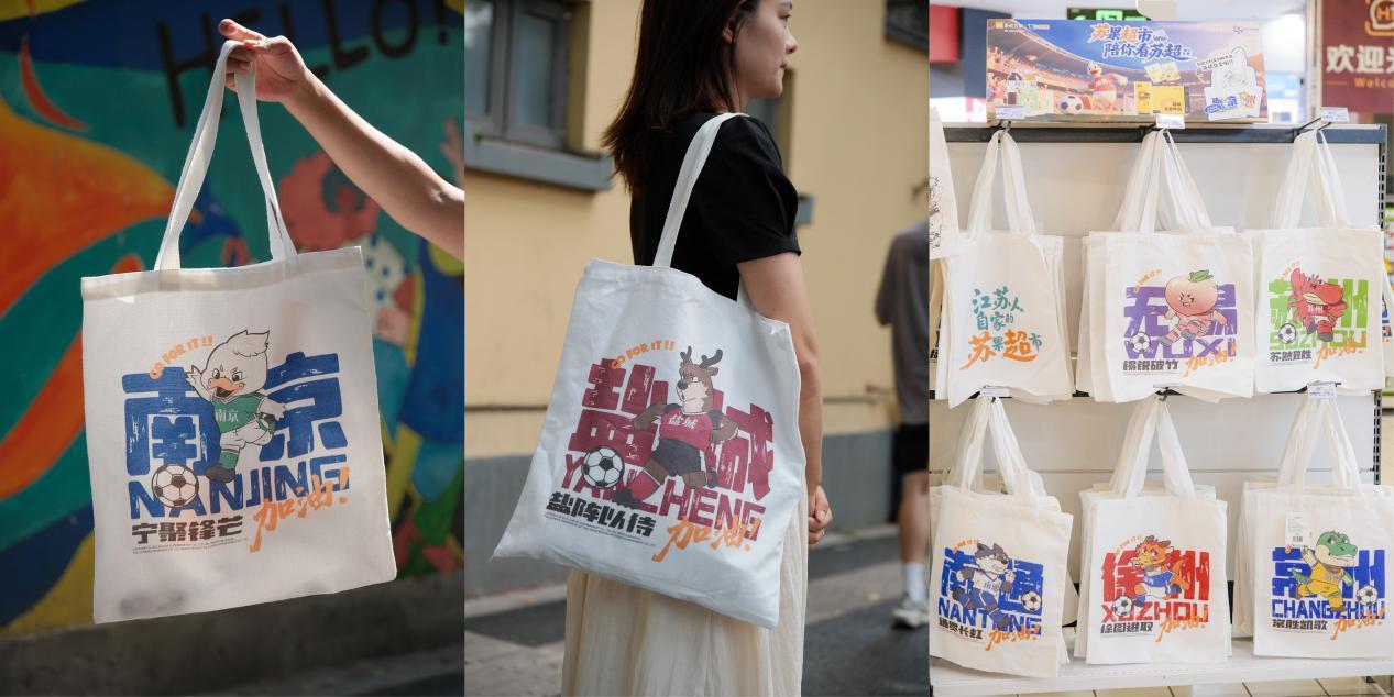 為致敬本土足球精神,蘇果超市特別設(shè)計(jì)推出限量版“蘇超文創(chuàng)購物袋”。該系列巧妙融合“江蘇十三城”的代表性動(dòng)物IP與足球文化,用“南京,寧聚鋒芒”“鹽城,鹽陣以待”“無錫,錫銳破竹”等創(chuàng)意設(shè)計(jì),將城市的驕傲與對(duì)足球的熱愛印在袋上,一經(jīng)推出便引發(fā)球迷和市民的強(qiáng)烈共鳴與搶購熱潮。