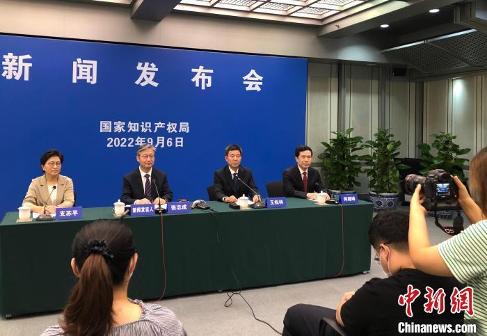 國家知識產(chǎn)權(quán)局舉行9月例行新聞發(fā)布會會場。 中新社記者 孫自法 攝