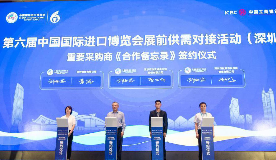 當(dāng)日,為給粵港澳大灣區(qū)企業(yè)與進(jìn)博會參展企業(yè)搭建對接交流的平臺,第六屆中國國際進(jìn)口博覽會展前供需對接活動在深圳舉行。進(jìn)博會技術(shù)裝備、食品及農(nóng)產(chǎn)品、服務(wù)貿(mào)易展區(qū)近60家參展商到場展示,吸引粵港澳大灣區(qū)200余家企業(yè)到會進(jìn)行現(xiàn)場對接。(毛思倩)