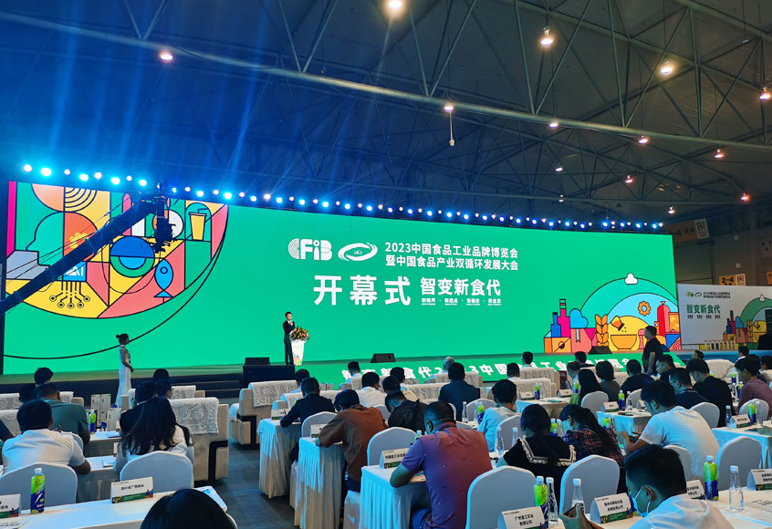 開幕式現(xiàn)場,在中國輕工業(yè)聯(lián)合會會長張崇和主持下,多名嘉賓上臺共同見證了2023年中國食品工業(yè)品牌博覽會的啟幕。