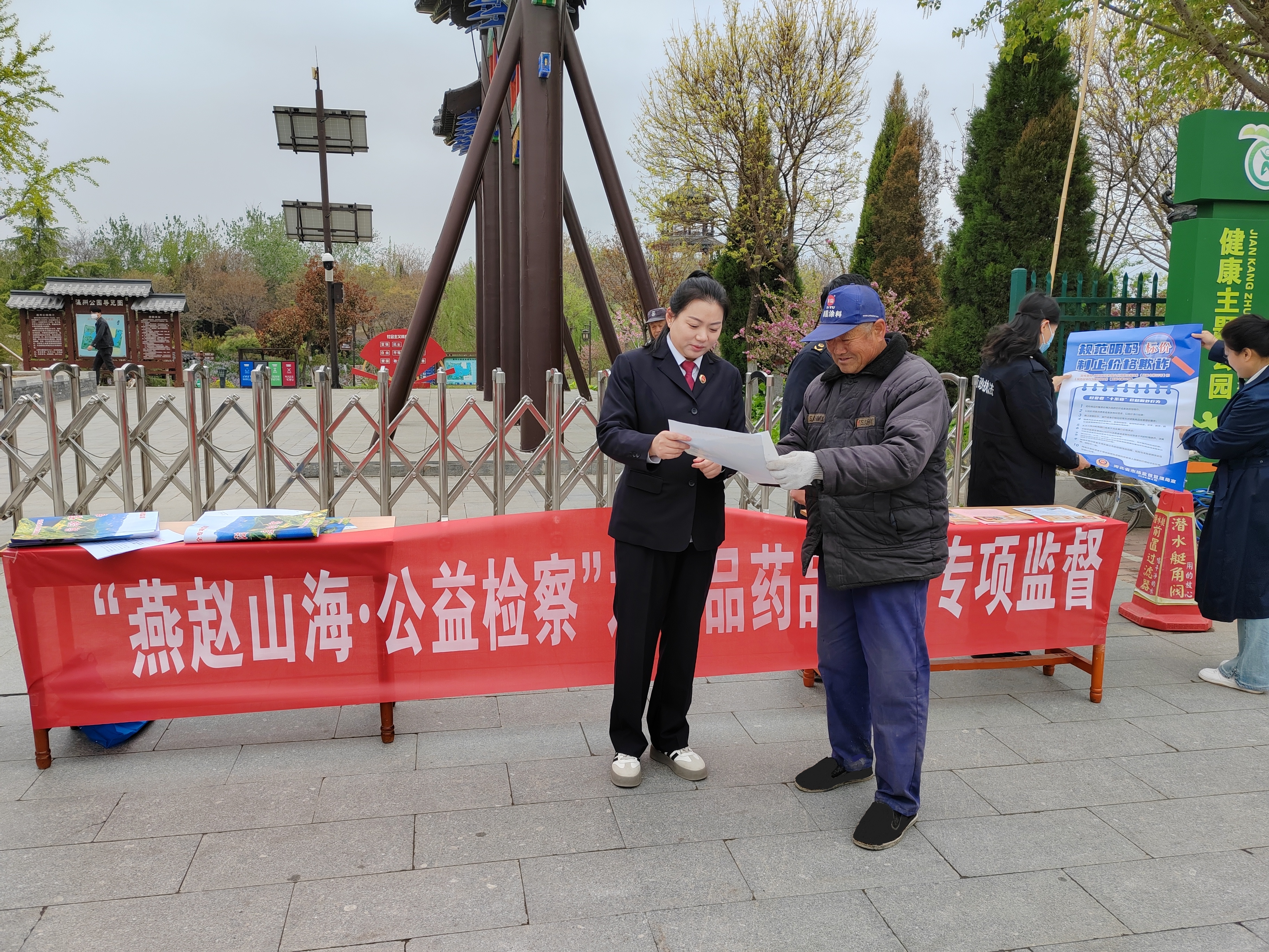 為積極開展“公益訴訟走基層、百鎮(zhèn)千村萬戶行”專項(xiàng)工作,4月9日,河北省滄州市河間市人民檢察院聯(lián)合河間市市場監(jiān)督管理局到瀛州公園廣場開展“燕趙山海·公益檢察”之食品藥品安全專項(xiàng)監(jiān)督宣傳活動(dòng)。
