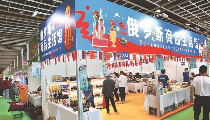 4月27日,第十八屆江蘇春季食品商品展覽會(huì)在南京國際展覽中心舉行。展會(huì)匯聚全國各地美食,涵蓋糧油、飲料、干果炒貨等,還開設(shè)了進(jìn)口食品區(qū)。圖為市民在“俄羅斯商品生活館”選購。記者 宋寧 攝