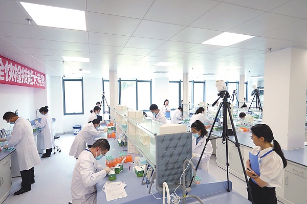實(shí)操競賽共設(shè)置42個(gè)實(shí)驗(yàn)操作臺(tái),每名選手操作時(shí)長不超過1.5小時(shí)。每名參賽選手需完成2項(xiàng)“快檢檢測項(xiàng)目”,共計(jì)30組盲樣,參賽人員按照使用說明書進(jìn)行現(xiàn)場操作,并根據(jù)實(shí)驗(yàn)現(xiàn)象填寫檢測結(jié)果。實(shí)操競賽難點(diǎn)有3個(gè):采取檢測盲樣考核,盲樣既有陰性樣品也有陽性樣品,且陽性樣品加標(biāo)濃度是最低檢出限,非??简?yàn)操作人員水平;快檢操作中對(duì)易忽略的規(guī)范性操作進(jìn)行考核,移液器等快檢關(guān)鍵設(shè)備的取液、換槍頭等操作有很多細(xì)節(jié),稍不注意就會(huì)導(dǎo)致扣分;實(shí)驗(yàn)室環(huán)境安全也是一個(gè)考點(diǎn),實(shí)驗(yàn)現(xiàn)場分別準(zhǔn)備了垃圾桶和廢液桶,參賽選手應(yīng)將固體廢棄物和廢液分別倒入相應(yīng)的容器內(nèi),考核了對(duì)廢棄物的分類處理能力。