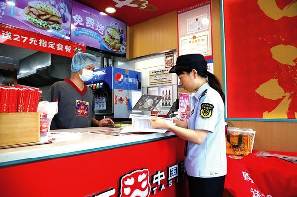 隨后,執(zhí)法人員來(lái)到一家漢堡店,對(duì)經(jīng)營(yíng)主體資格是否合法,環(huán)境衛(wèi)生是否符合要求,食品進(jìn)貨渠道是否正規(guī)、進(jìn)貨手續(xù)是否齊全,臺(tái)賬記錄、餐廚廢棄物記錄是否完善等情況進(jìn)行詳細(xì)檢查。同時(shí),執(zhí)法人員還提醒經(jīng)營(yíng)者做好反食品浪費(fèi)宣傳,主動(dòng)承擔(dān)制止餐飲浪費(fèi)的義務(wù),避免餐飲浪費(fèi)現(xiàn)象發(fā)生。