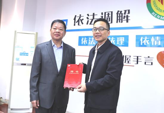 調(diào)解員們接受聘書(shū)。
