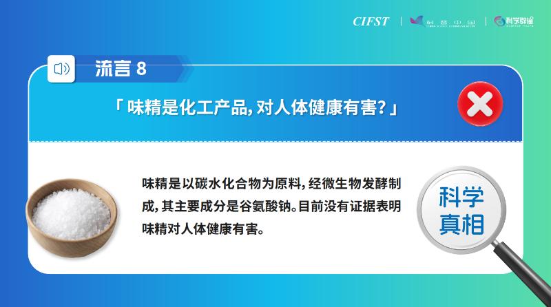 1月8日,中國食品科學(xué)技術(shù)學(xué)會與科普中國共同發(fā)布“2024年食品安全與健康流言榜”,涉及食用鹽、牛奶、果蔬、咖啡、味精、預(yù)制菜等日常食品。