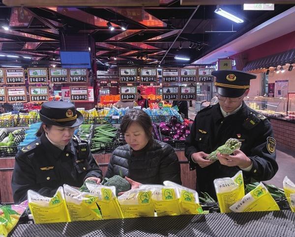 1月10日,山東省寧陽縣市場監(jiān)管局開展“食品你點我檢”活動,對部分商場超市內的食品進行抽檢。該局以蔬果、肉類食品及零食、飲料等為重點,依照相關標準和程序,對食品質量、添加劑使用、農藥殘留等關鍵指標進行檢測。(何敬華 于亭亭)