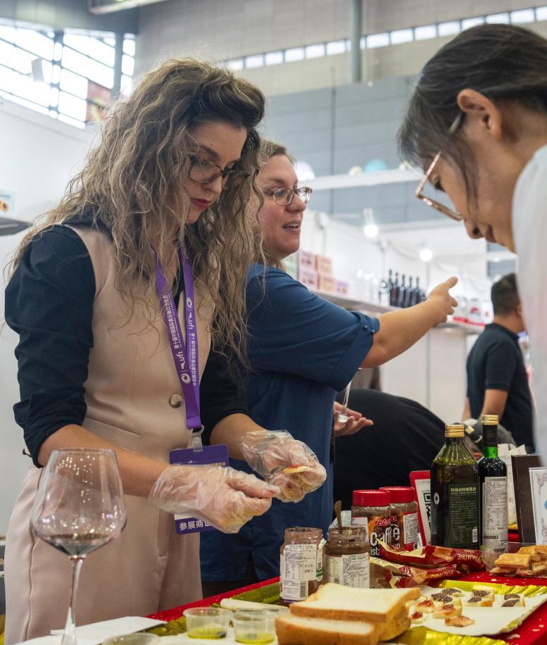 9月19日,在長沙國際會展中心,觀眾(中)在了解展出的奶制品。新華社記者 陳思汗 攝