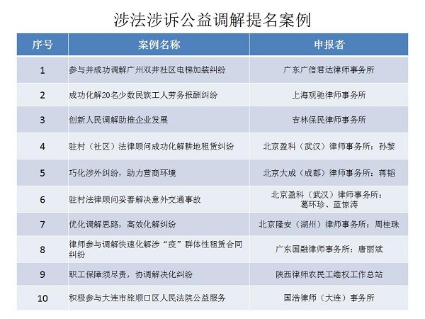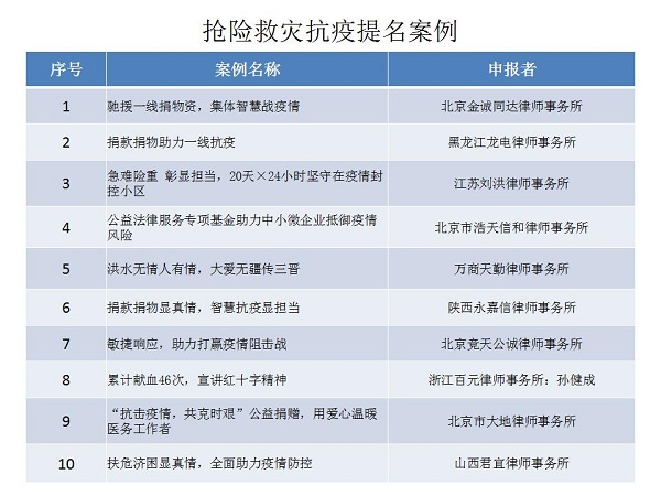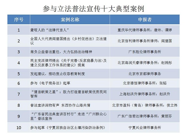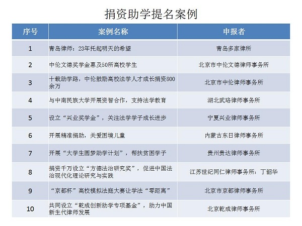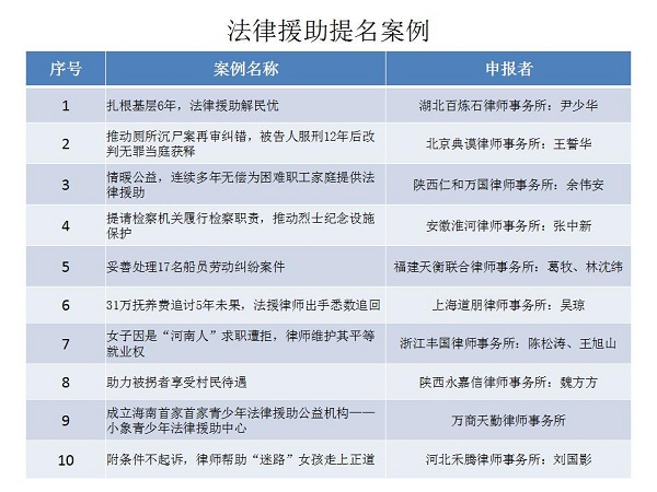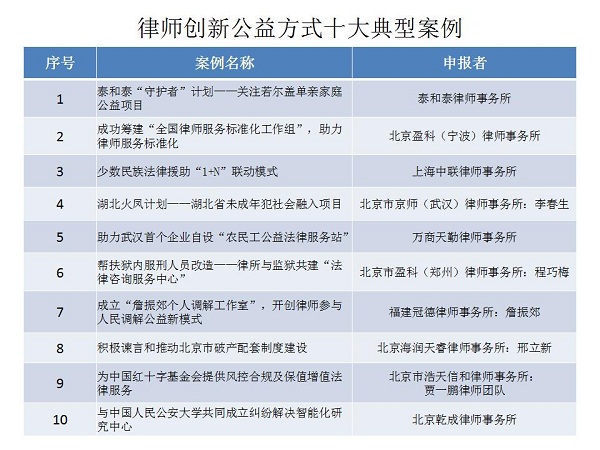 結(jié)合公眾投票和專(zhuān)家評(píng)審,十大律師公益類(lèi)別最終產(chǎn)生了一百個(gè)典型案例,一百個(gè)提名案例。