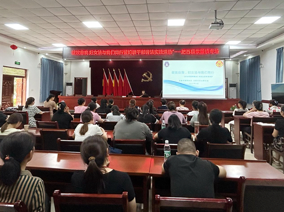 為做好新修訂婦女權(quán)益保障法的貫徹實(shí)施,提升婦女知法、懂法、普法、用法能力,8月18日,由安徽省合肥市肥西縣婦聯(lián)主辦、紫蓬鎮(zhèn)婦聯(lián)承辦的“綻放自我·婦女法與我們同行”暨婦聯(lián)干部講法實(shí)踐活動在紫蓬鎮(zhèn)開展。肥西縣婦聯(lián)副主席、鎮(zhèn)村婦聯(lián)主席、婦聯(lián)執(zhí)委、律師、機(jī)關(guān)女干部、企業(yè)女職工、婦女群眾等80余人參加。