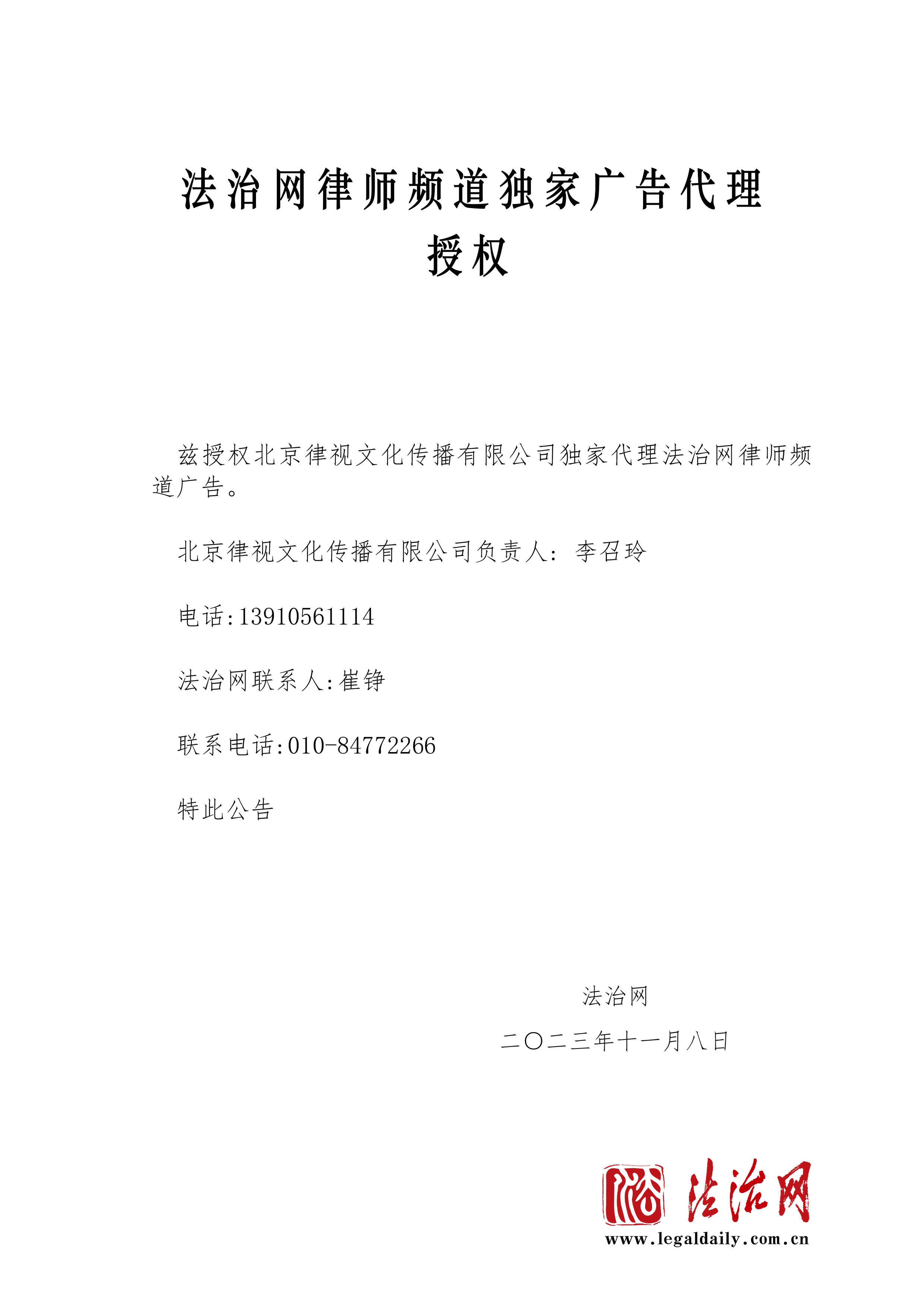 律師頻道廣告代理公告