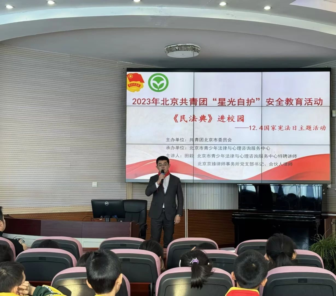 近日,北京京臻律師事務所律師田毅作為北京市西城區(qū)律師協(xié)會宣傳與表彰工作委員會委員、北京市青少年法律與心理咨詢服務中心特聘講師走進育新實驗小學,為同學們開展“民法典進校園”主題講座,引導學生自覺樹立尊法學法守法用法的意識,做知法守法的好少年。