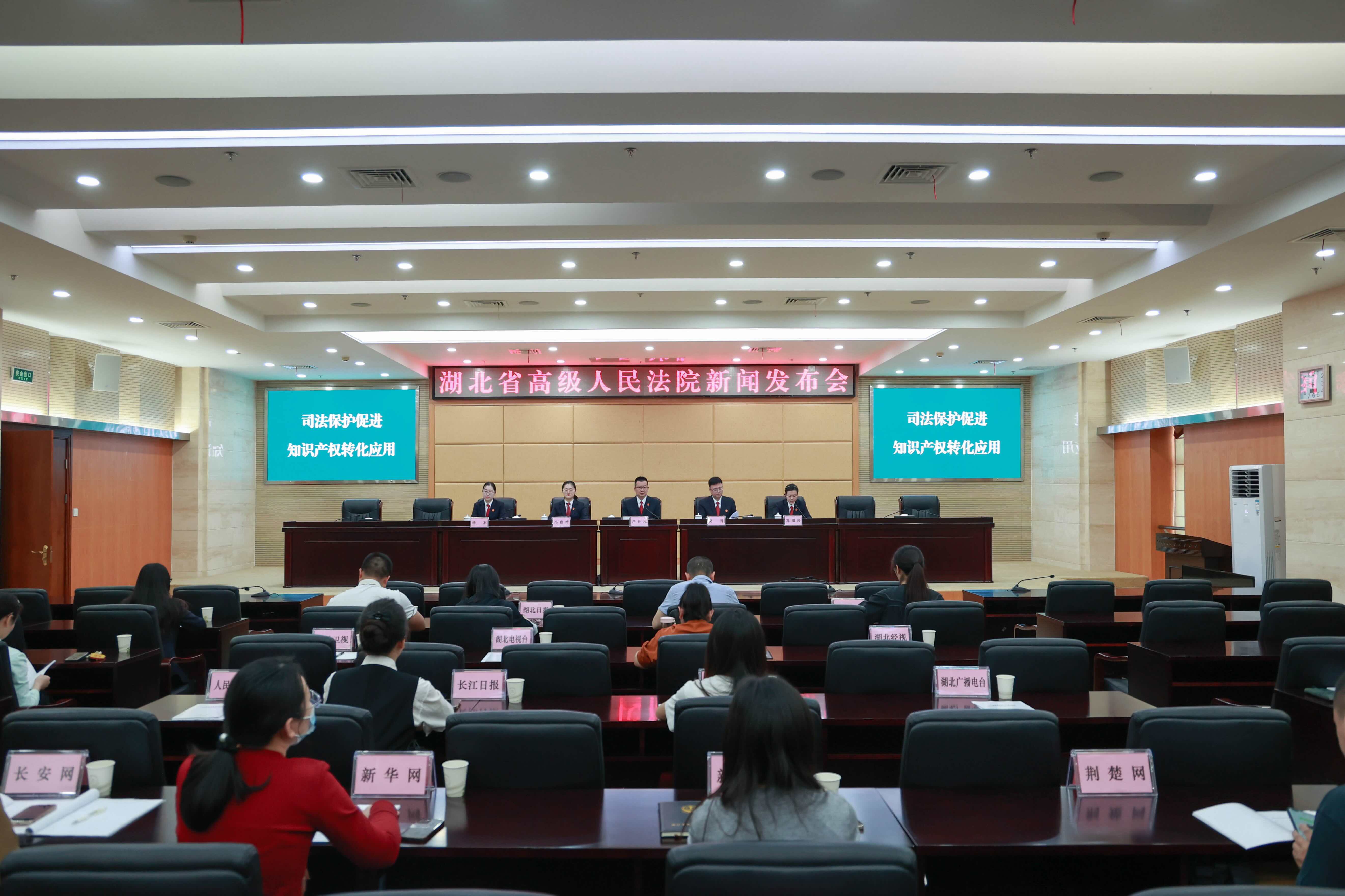 圖為湖北省高級人民法院新聞發(fā)布會現(xiàn)場。