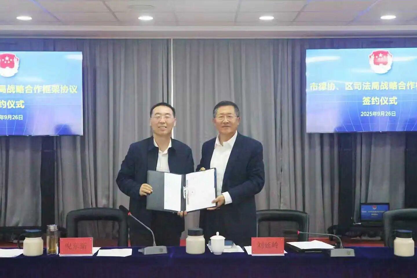 近日,北京市律師協(xié)會(huì)與北京市朝陽區(qū)司法局正式簽署合作框架協(xié)議,啟動(dòng)志愿律師參與行政復(fù)議調(diào)解試點(diǎn)工作。北京市律師協(xié)會(huì)會(huì)長(zhǎng)劉延嶺、副會(huì)長(zhǎng)呂立秋、行政復(fù)議法專業(yè)委員會(huì)主任任佳慧、副主任李萌及志愿律師代表參加簽約儀式。